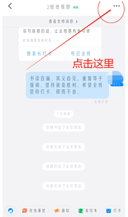 点击进入群聊窗口,如图,点击右上角符号【...】,