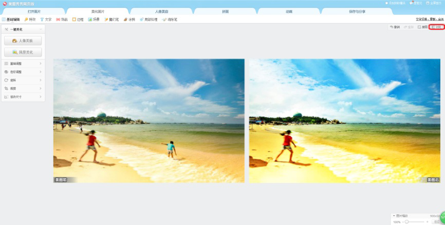 6、点击右上角【对比】,可对修改前后图片进行比较。