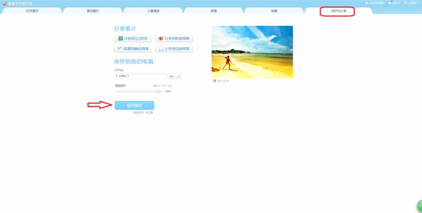 7、满意后点击右侧【保存与分享】,然后点击下方【保存图片】即可。