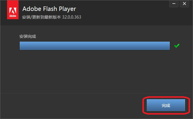 5、Adobe FlashPlayer安装完成,点击【完成】。