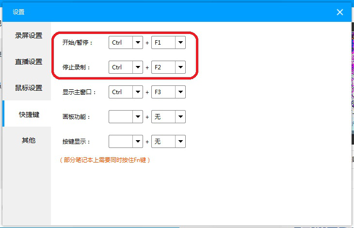 6、点击【快捷键】,记一下开始/暂停和停止录制的快捷键。