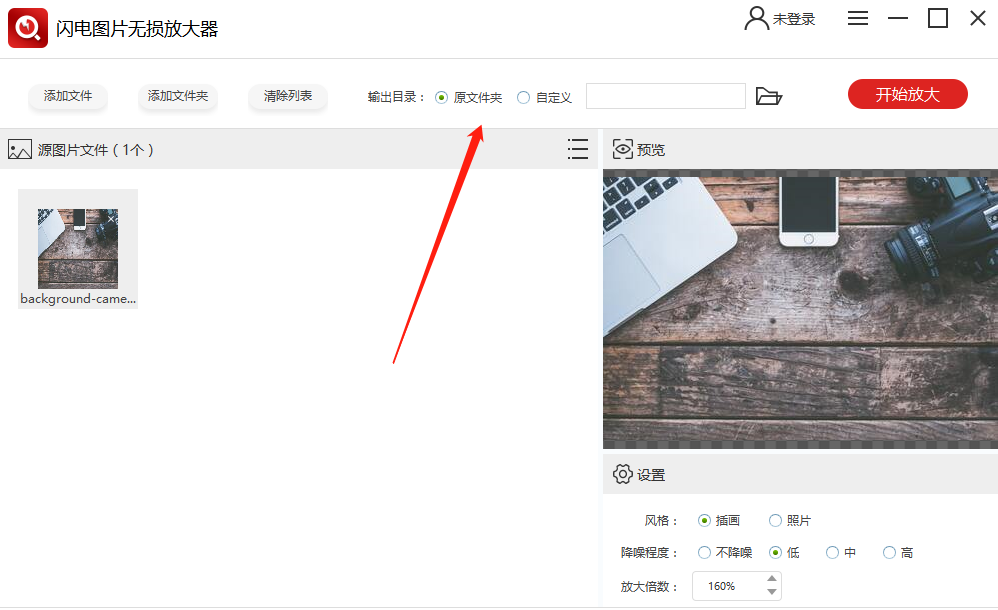 图片上传成功,在右侧窗口中进行相关设置,选择图片风格、降噪程度以及放大倍数,
