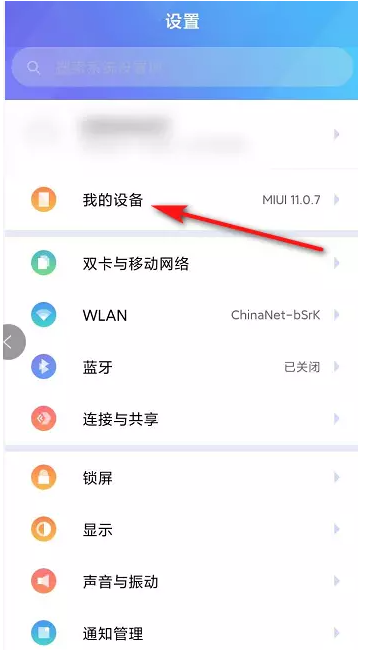 首先打开新的小米手机,点击进入设置界面,如图,点击【我的设备】,