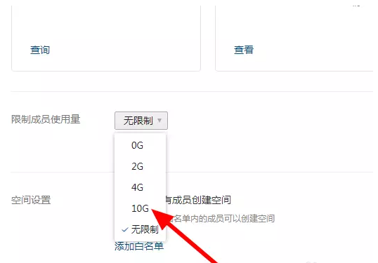 展开下拉菜单,这里有五个选项,分别是0G、2G、4G、10G和无限制,小编选择的是10G,