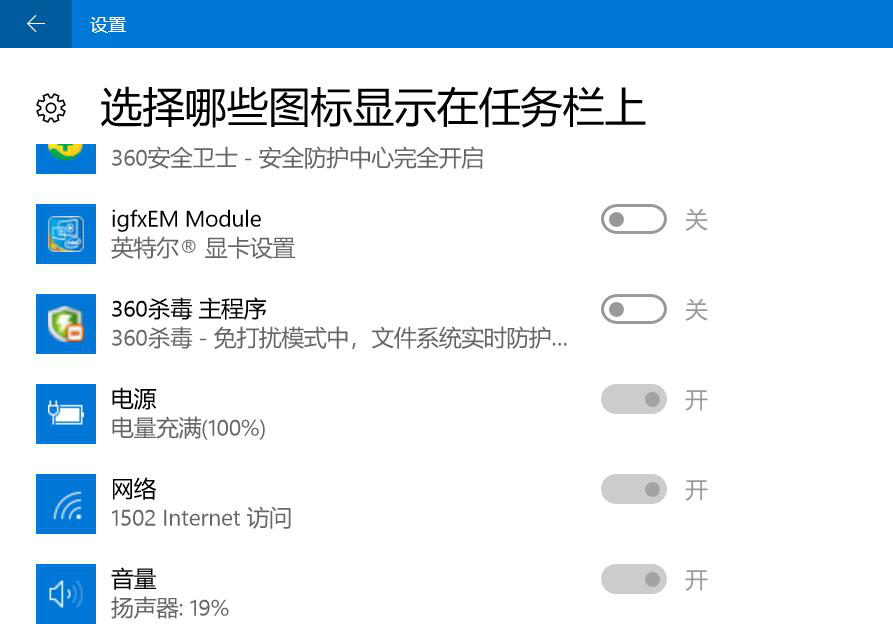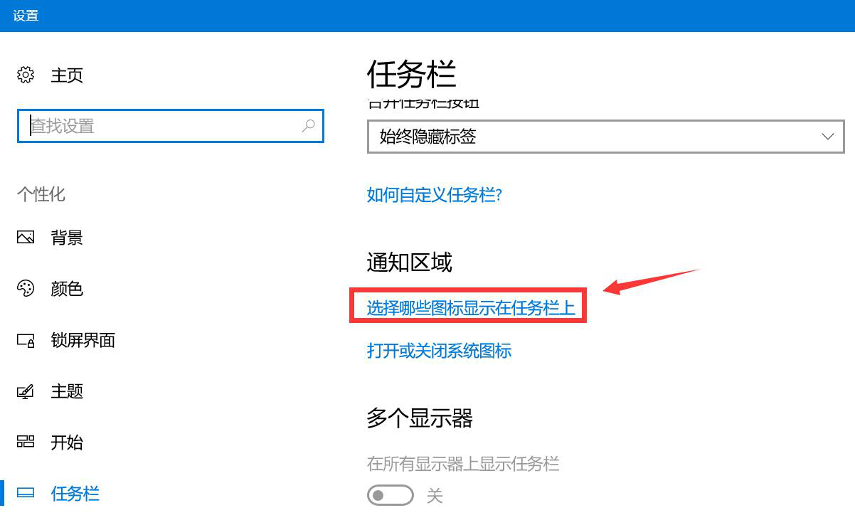 2、然后,在任务栏设置向导页中找到“通知区域”,从中点击“选择哪些图标显示在任务栏上”。