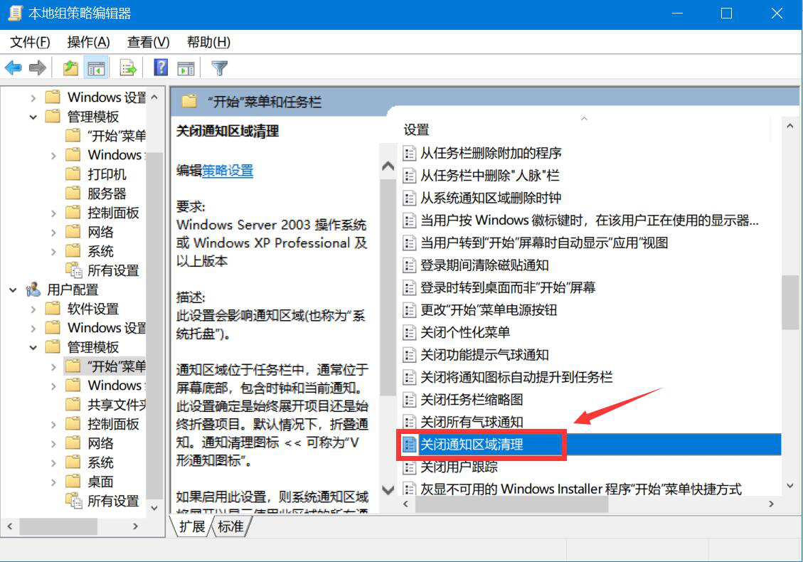 6、最后,找到“关闭通知区域清理”的选项,将其设置为启用,那么已经在桌面任务的bitdock便会一直固定在任务栏处了。