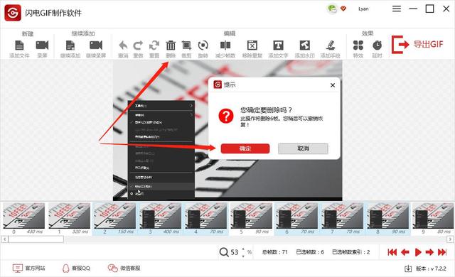 闪电GIF制作软件如何删除动图帧画面?