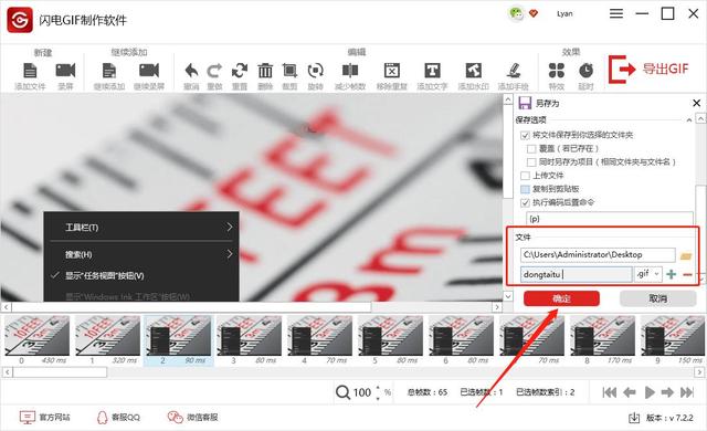 软件即会自动删除帧,然后点击右上角的【导出GIF】,导出保存GIF动图,选择一个新的存储位置,点击确定。