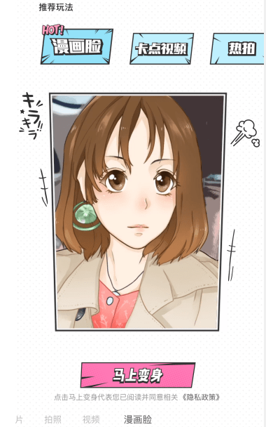 在手机中打开一甜相机,进入首页,点击右下角的【漫画脸】功能,由于软件版本不同,漫画脸位置的名称可能不一样,