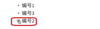 5、移动标题。在编辑大纲时,用户常常会遇到需要变更标题上下位置的情况。你可以通过拖拽快速实现标题移动。如图,使用鼠标左键按住“编号2”标题前的【·】,将其拖拽到“编号1”标题和“编号3”标题之间即可。