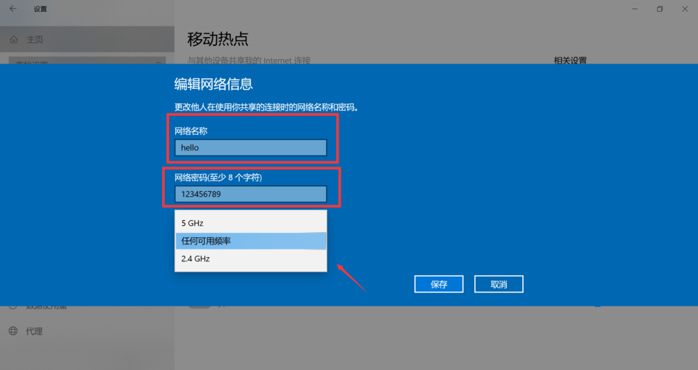 如图,选择共享位置,点击【编辑】,设置共享WLAN的网络名称、密码和频率,频率无特殊需求,最后进行保存,