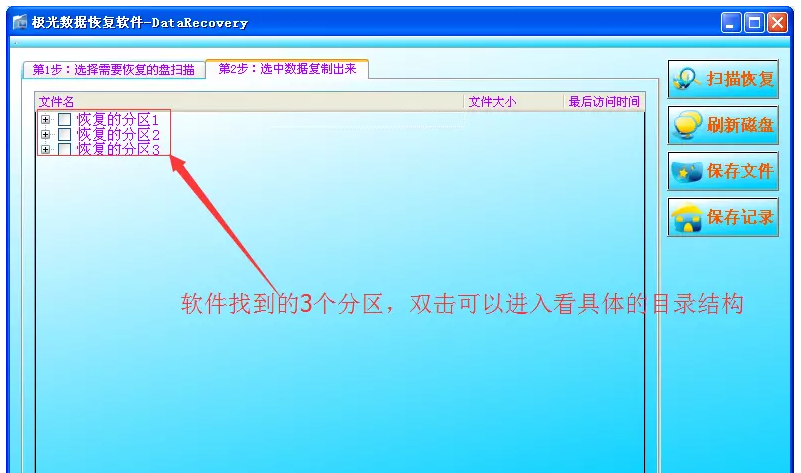 扫描结束,软件界面中会显示已经找到的分区,