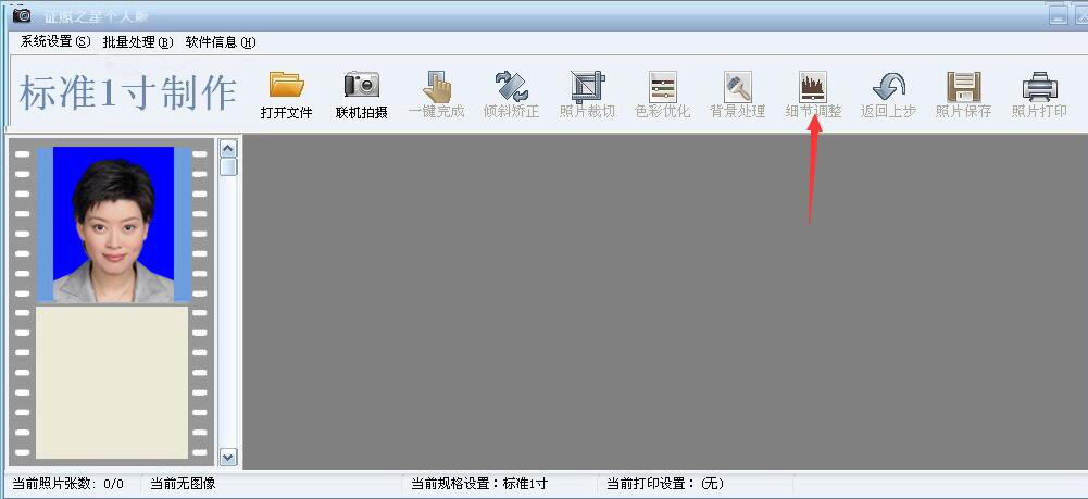 7、将照片的背景替换成功后,如果原照片的服装不符合证件照要求的话,还需要点击证照之星的“细节调整”。