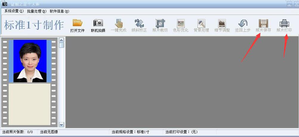 9、最后,自己制作证件照成功后,用户点击证照之星的“照片保存”即可将该证件照保存到自己所设置的路径。点击“照片打印”,便可以将该证件照打印出来。