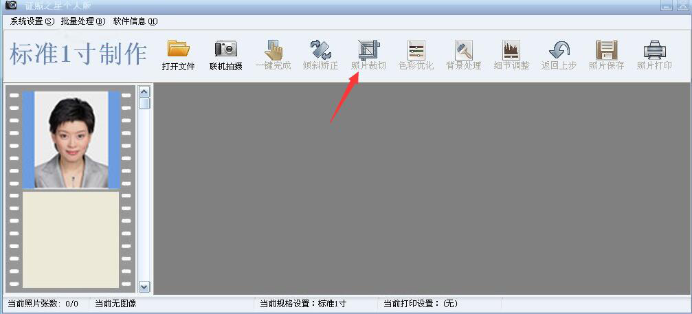 2、然后,在证照之星界面中,点击功能栏中的“照片裁切”。