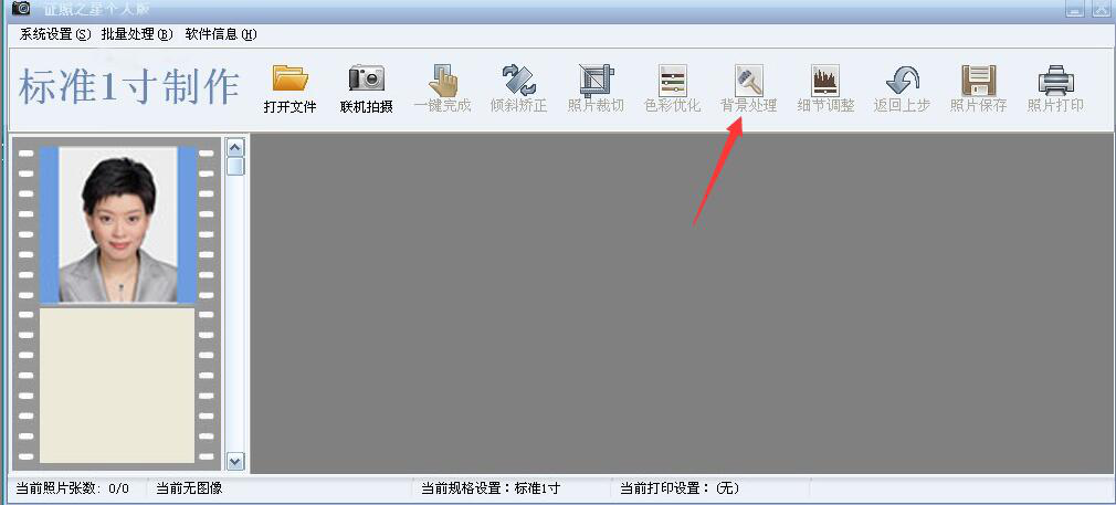 5、接下来,用户需要点击证照之星的“背景处理”,准备为照片的背景做替换。