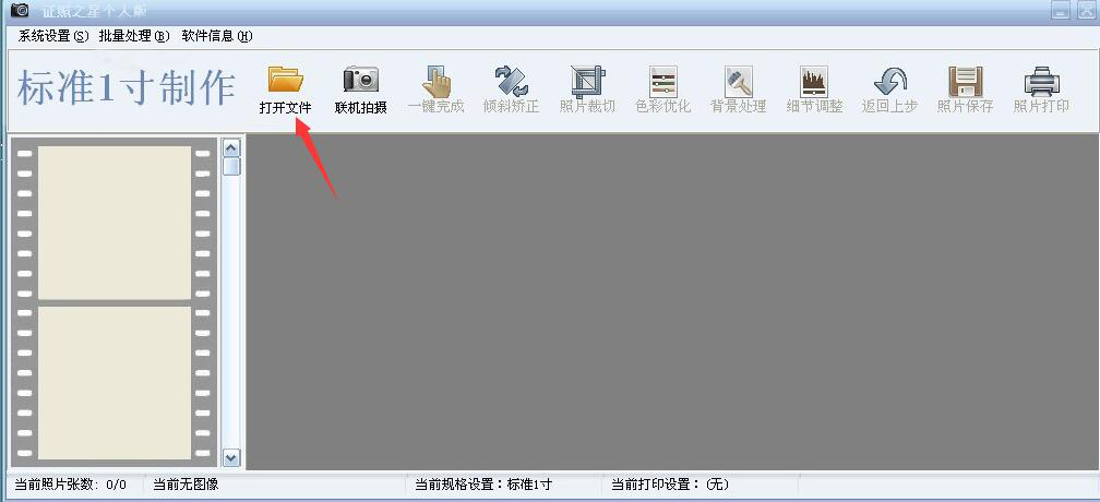 1、首先,用户可以在本站下载安装证照之星,打开证件照片制作软件,进入界面,点击“打开文件”将需要制作证件照的照片添加进来。