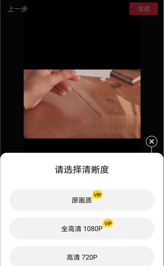 7、最后,点击右上方的“生成”按钮,选择视频输出的清晰度。快剪辑便将去除了水印的视频自动保存到手机相册。