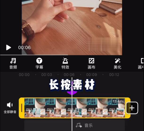 5、随后,在快剪辑中,长按该视频素材并拖拽视频尾部来调整时长。这样快剪辑就可以去除整个视频的水印。