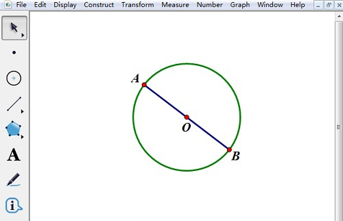 1、打开几何画板软件,选择左侧工具栏中的圆工具,在画板上画一个圆O;然后过圆心O点画一条直径,端点分别命名成A、B。