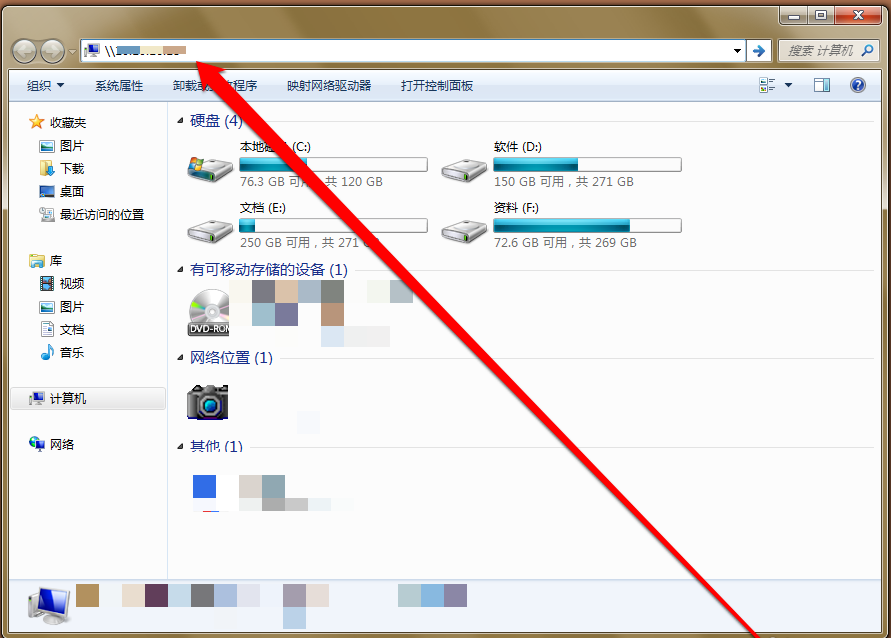 首先,鼠标双击打开计算机导航窗口,如图,将光标移动到上方地址栏,