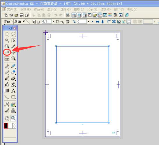 1、首先,用户将comicstudio打开,并在其工作区新建一个页面。