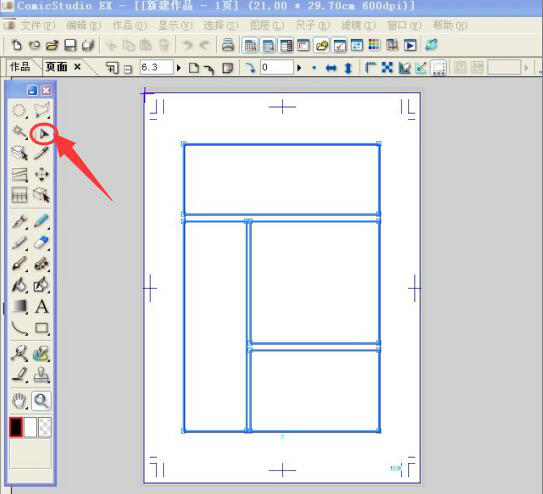 8、如果用户还需要对comicstudio分镜的大小进行修改或者绘制分镜的边缘线,可以在工具栏中点击“尺子选择”工具,如下图所示。