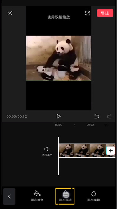 然后点击【背景】,选择【画布样式】,注意,视频素材可以进行双指缩放,缩放到适合的比例,