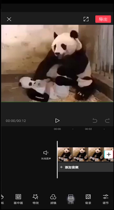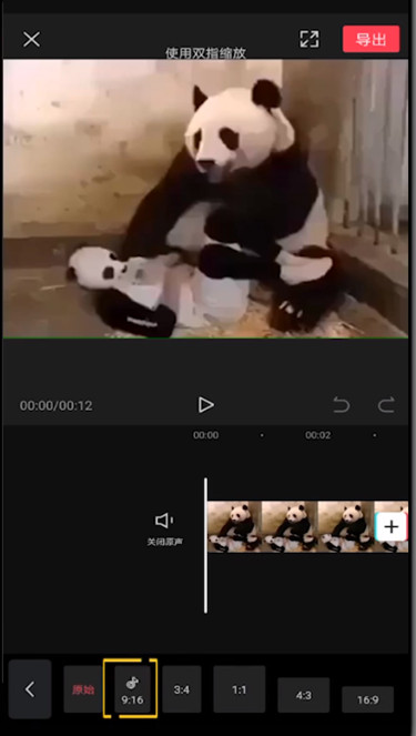 如图,向左滑动下方的菜单栏,点击【比例】功能选项,选择【16:9】模式,