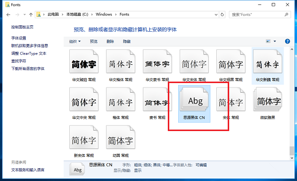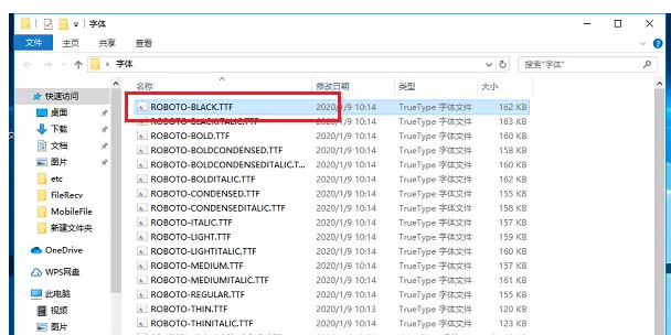 字体安装完成,进去C:\\Windows\\Fonts路径,检查字体是否安装在电脑中。