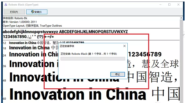 出现提示,正在安装字体,等待安装成功,