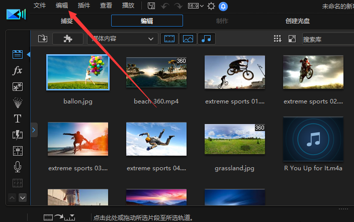本文就以威力导演18为例,打开软件,进入界面,在上方菜单栏中点击【编辑】选项,