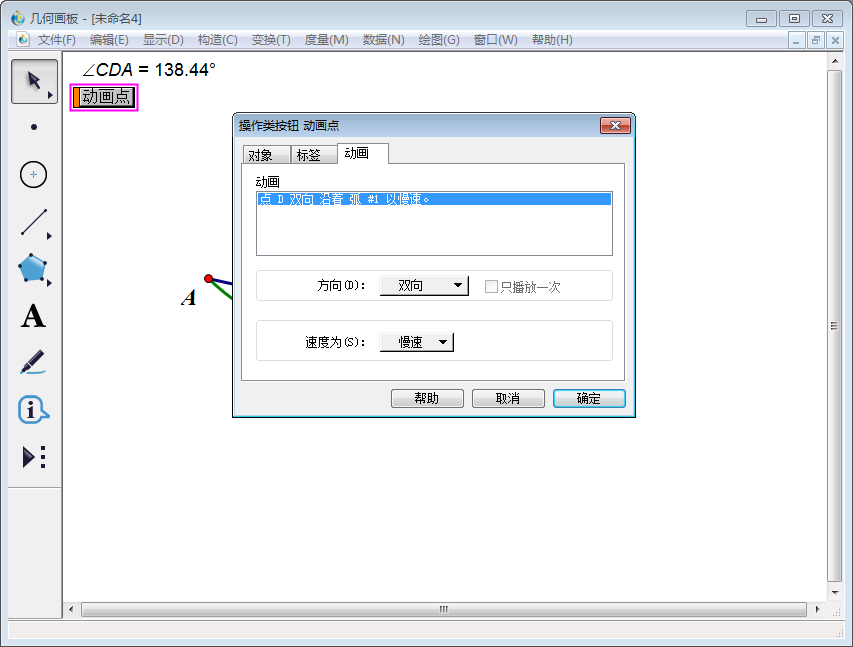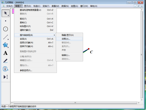 8、使用【移动箭头工具】选中点D,然后点击上方菜单栏中的【编辑】,在其下拉菜单中的【操作类按钮】—【动画】。