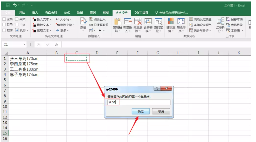 选择保存提取结果的单元格,点击确定,即可顺利提取数值。