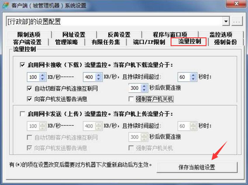 1、想WorkWin禁止局域网看电影视频,那就在系统设置界面,切换至“限制选项”,勾选“禁止网页显示Flash动画、电影、Flash游戏”,点击“保存当前组设置”。不过本方法仅适合使用IE浏览器的被管理端。