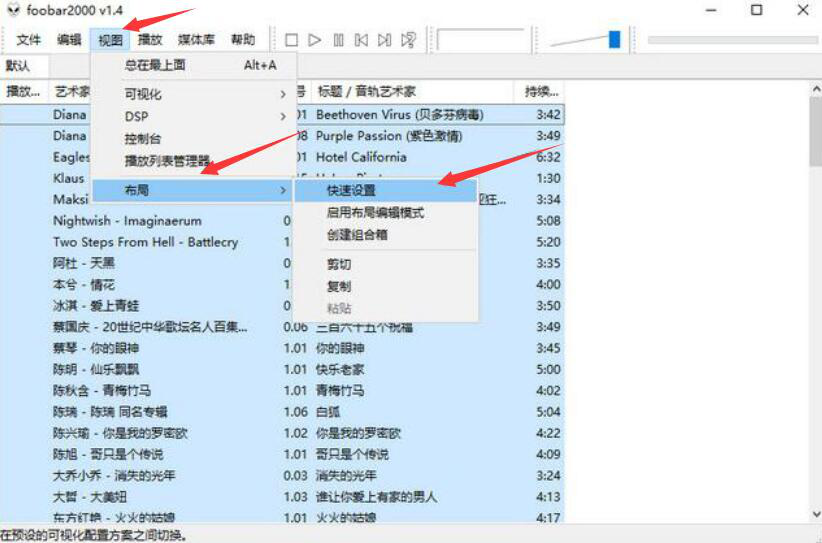foobar2000音乐播放器还有一个功能是其他音乐播放器无法实现的,就是它的布局功能。用户可以根据自己操作的习惯,调整foobar2000音乐播放器的布局。