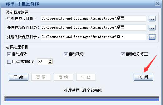 4、证照处理完毕后,在窗口中会有相关的提示。用户点击“关闭”按钮即可结束证照之星批量制作的环节。