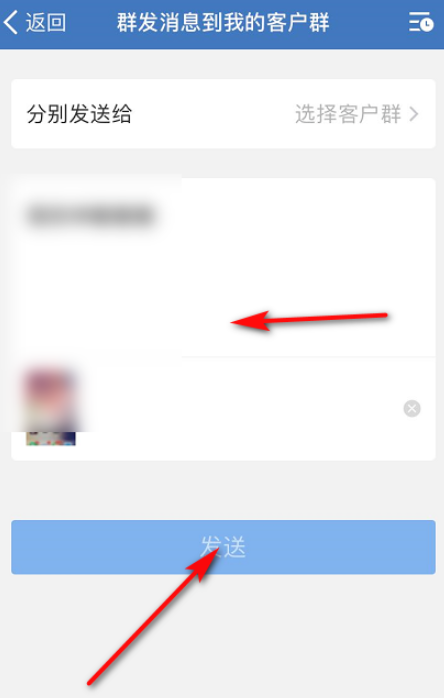 进入群发消息界面,选择目标客户群,输入文字内容,然后点击【发送】,即可将消息群发到客户群。