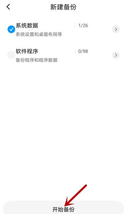 选择需要备份的数据,点击【开始备份】,