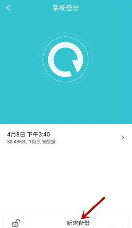 打开系统备份功能,如图,点击底部的【新建备份】,
