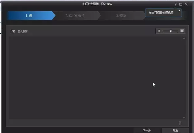 2、弹出窗口,如图,点击【源】,第一步就是导入照片,