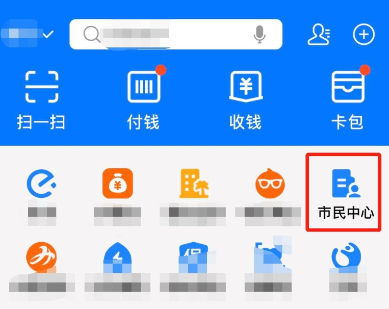 打开手机支付宝,进入首页,点击【市民中心】,如果你没用过这一服务,可以自行搜索查找,