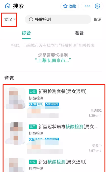 如图,选择你当前所在地区,系统会按照距离提供支持核酸检测的医院,你选择其中一个就行了,