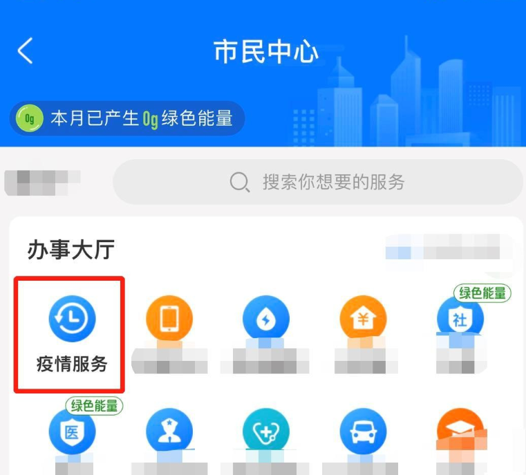 进入市民中心服务界面,点击【办事大厅】——【疫情服务】,