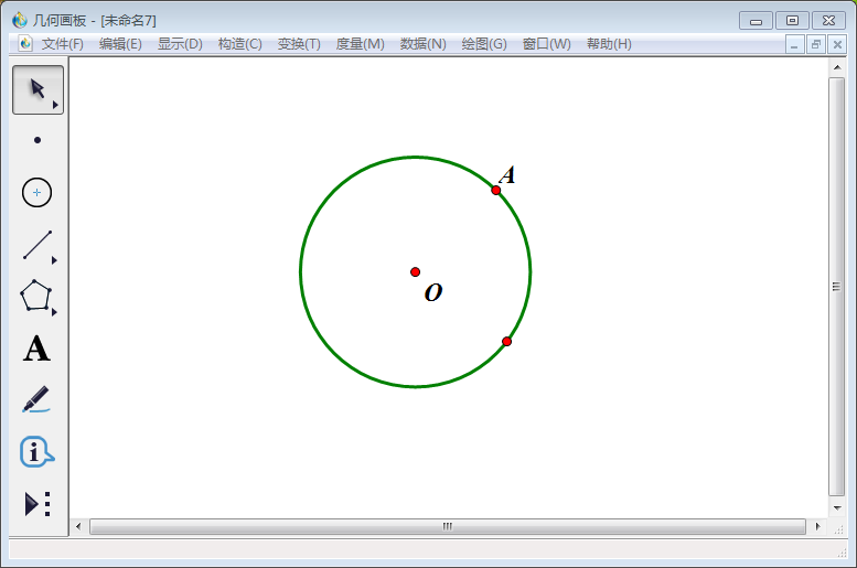 1、点击使用左侧栏中【圆工具】,在空白画板上画一个圆,圆心标为O;在圆上任取一点标为A。