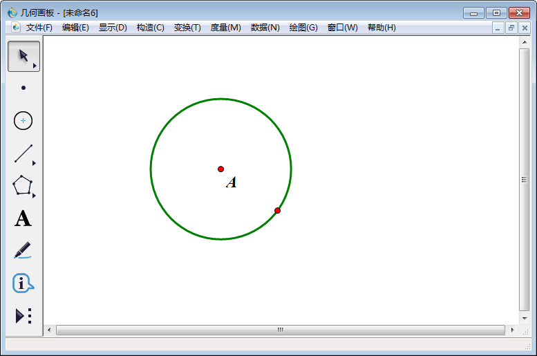 1、点击左侧工具栏中的【圆工具】,在空白画板上画一个圆,点击左侧工具栏中的【文本工具】将圆心标为A。