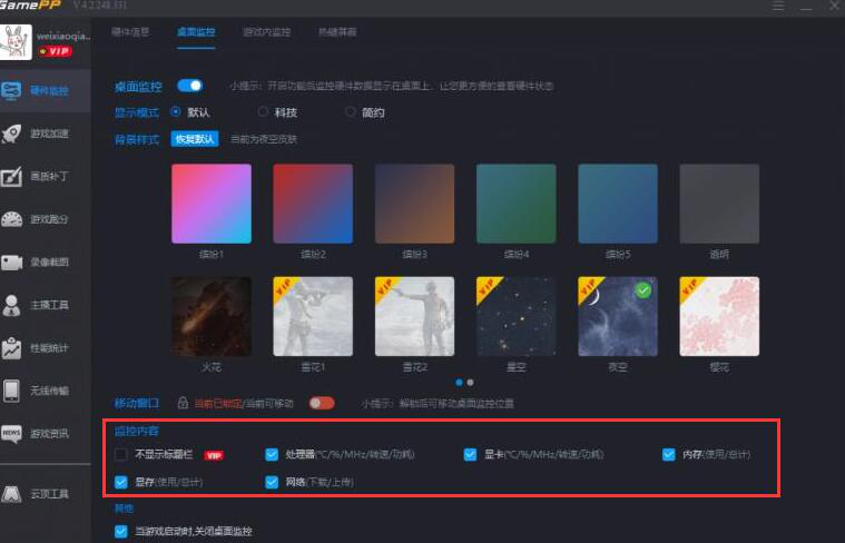 2、然后,用户切换至“桌面监控”设置页,开启桌面监控。