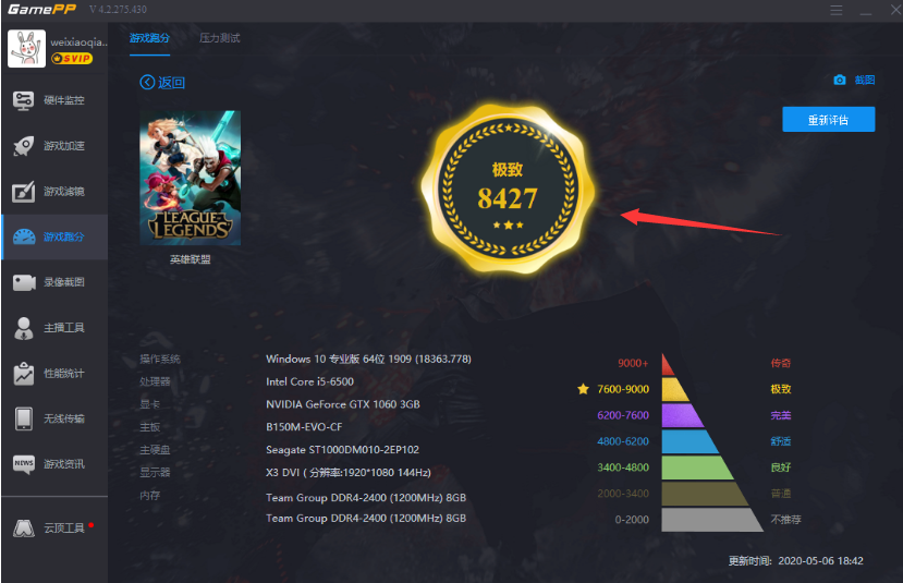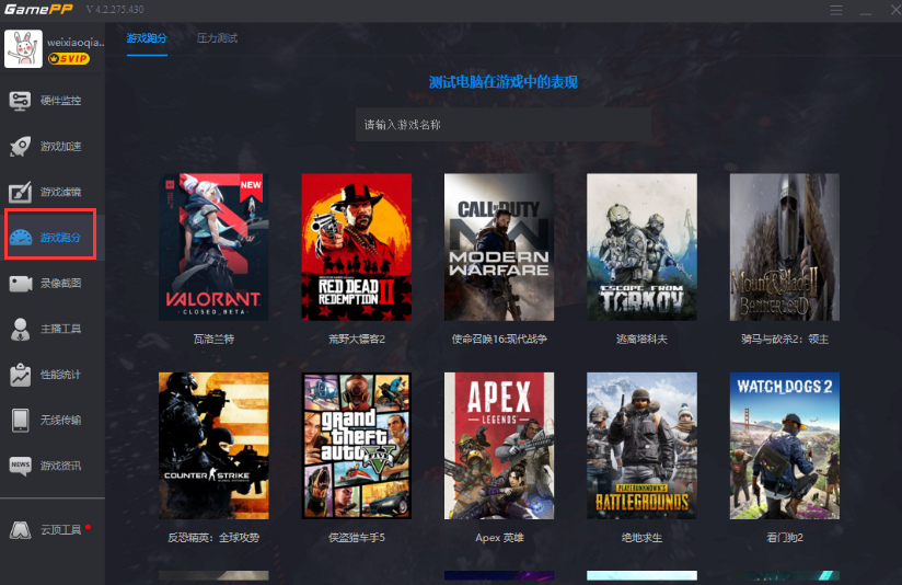 为什么我说游戏加加是游戏高玩必备辅助软件?它有个非常人性化的地方。就是它的游戏跑分功能。因为很多高端玩家在玩游戏前,都会想知道自己的电脑是否能支持顺畅玩某种游戏,游戏加加就能实现用户这一需求。