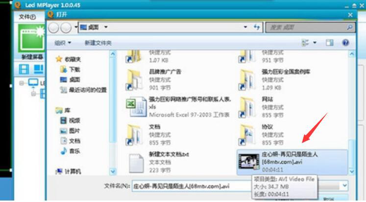 6、接着,用户选择需要播放的视频,点击“打开”将该视频导入LED演播室。