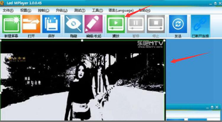 7、最后,点击LED演播室功能栏处的“播放”按钮,LED演播室便可播放视频了。